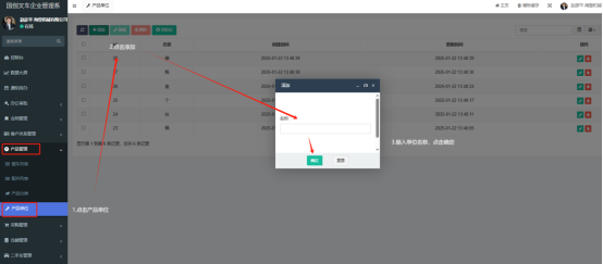 进入产品单位模块,点击新增,输入新增的产品单位,点击确定就完成新单位的新建。