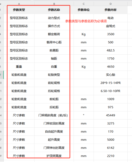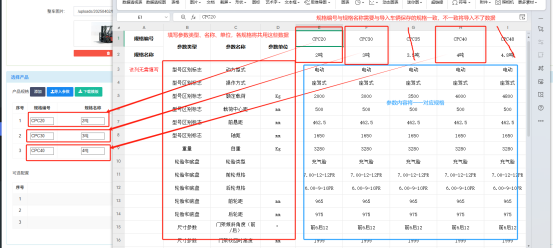 车辆参数配置可批量导入,导入分为单规格参数批量导入与多规格参数批量导入,单规格批量导入需进入车辆产品参数配置中,下载导入模板,将参数填入,并将模板上传导入。多规格导入需要在整车规格列表下载导入模板,对应不同规格,将多个规格数据填入,并上传模板文件导入多规格产品的参数。