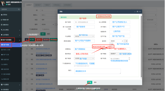 1. 客户列表新增客户(已有客户但未记录在系统)