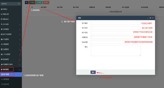 创建账户和采购各项费用信息,帮助财务人员进行记账。操作顺序为:创建账户-创建费用类型。