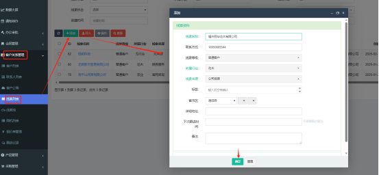 4. 新增客户线索并跟进发展为客户(有简单的客户线索,慢慢发展)