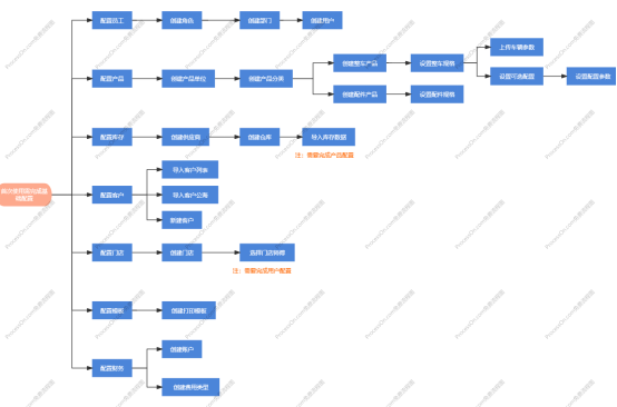 配置产品信息,后续订单库存采购等操作皆需要。操作顺序为:创建产品单位-创建产品分类-创建整车&创建配件。