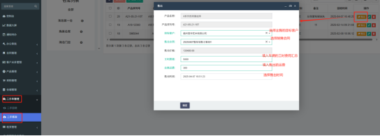 当二手车辆售出,与客户签订好合同,可在二手库存中,选择售出的车辆点击售出,选择购买车辆的客户,关联合同,填写工时与运费金额记录成本,填写完成后保存即可将车辆记录为售出状态,且销售金额与成本数据将同步至订单,自动计算利润。